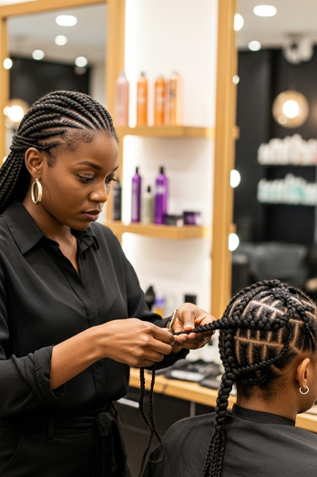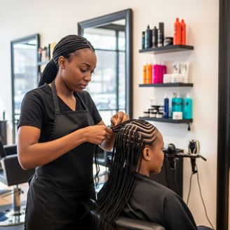 Whether you’re seeking classic box braids, trendy Fulani braids, or the elegance of crochet braids, our stylists combine creativity, skill, and dedication to deliver the perfect look every time. We specialize in intricate braiding styles, from micro braiding to high-quality hair extensions, all crafted to enhance your natural beauty.